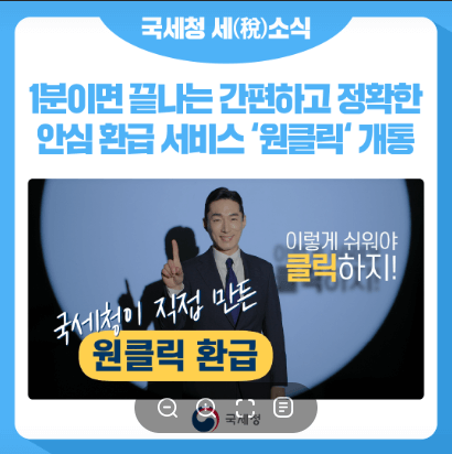 복잡한 환급 절차에 지쳤던 여러분을 위해 국세청이 준비한 가장 쉬운 방법, 클릭 한 번으로 모든 게 해결됩니다.